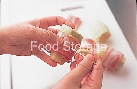ベーコンは半分に切り、1に巻いてようじで留める。