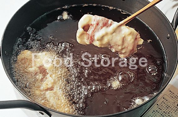 2を3にさっとくぐらせて、170℃に熱した揚げ油で牛肉に火が通るまで揚げる。 |