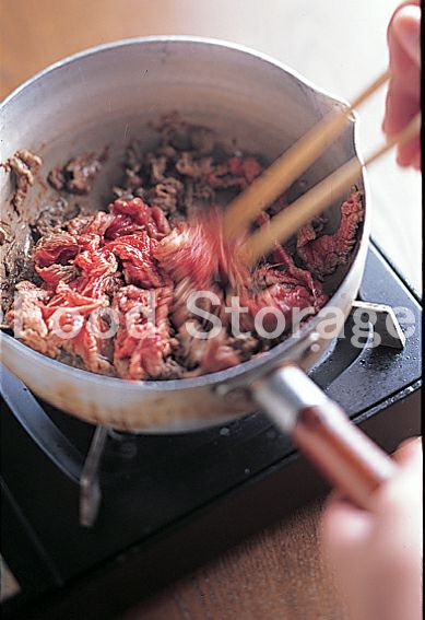 鍋を火にかけ、サラダ油を熱して、1の牛肉を炒める。 |
