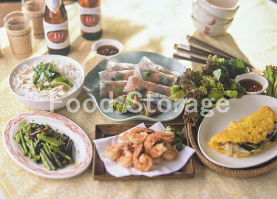 3を器に盛り、くし形に切ったライム(またはレモン)、合わせたAを添える。Aにライム(またはレモン)を絞って入れ、生春巻きをつけていただく。 |