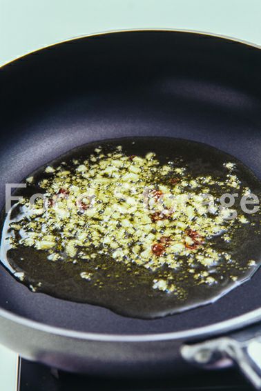 フライパンにオリーブ油、3のにんにくと赤唐辛子を入れて弱火にかけ、にんにくの香りが出たら2のあさり、白ワインを加えてふたをし、あさりの口が開くまで蒸す。 |