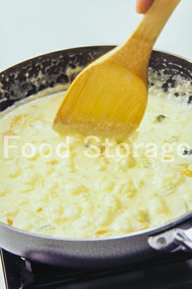 3.フライパンにバターを溶かし、1の野菜をしんなりするまで炒め合わせ、塩、こしょう、生クリームを加えて、かぼちゃをつぶしながら煮る。