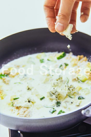 ゴルゴンゾーラチーズは溶けやすいように、小さくちぎる。 |