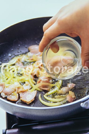フライパンにオリーブ油を熱し、1を炒め合わせ、白ワインを回し入れてアルコールを飛ばし、火からおろして冷ます。 |