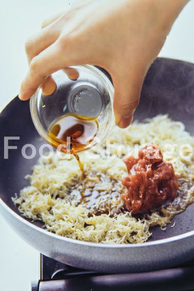 フライパンにごま油を熱し、しらすを炒める。2の梅、Aを加えてひと煮立ちしたらゆであがって水気をきったパスタ、パスタのゆで汁、大葉を加えて絡め、塩で調味する。 |