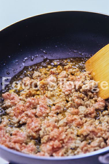 フライパンに2、サラダ油、豆板醤を弱火にかけ、香りが出てきたら豚ひき肉をほぐしながら炒め、Aを加えて炒め合わせる。 |