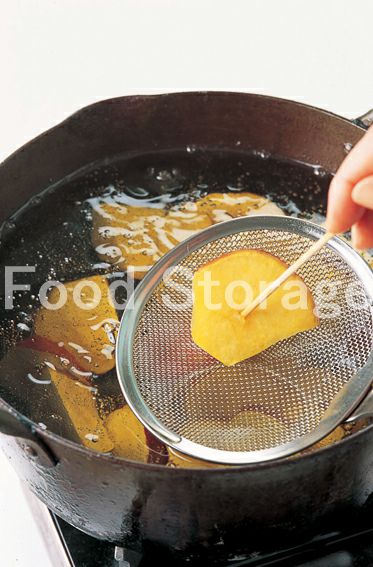 160℃に熱した揚げ油で、1のさつまいもを串がすっと通るまで5分ほど揚げる。 |