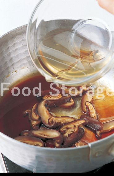 鍋に干ししいたけとその戻し汁、Aを入れて煮立てる。 |