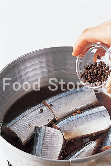 さんまは頭と尾を切り落とし、内臓を菜箸でかき出して取り除く。流水でよく洗って水けを拭き、5cm幅の筒切りにする。長ねぎは白髪ねぎにする。 |