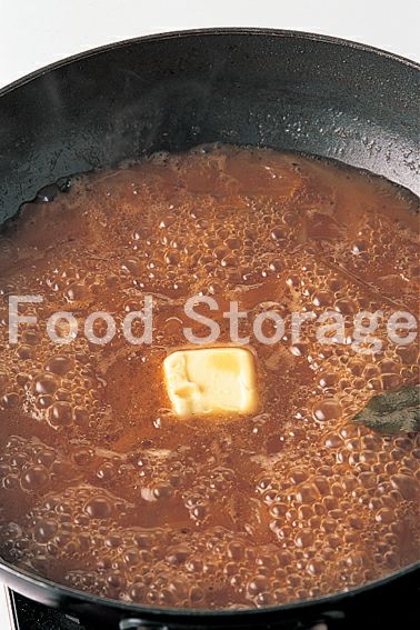 3のフライパンにバターを加えて強火で5分ほど煮詰めてソースを作り、3の鶏肉にかける。 |