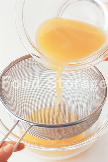 卵をボウルに割りほぐし 冷ましただし汁とBを加えて混ぜ合わせ、こし器でこす。 |