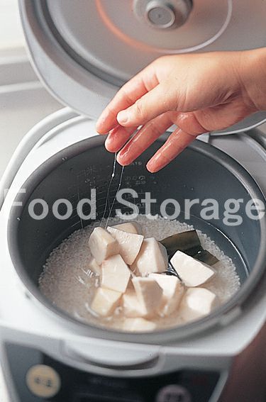 米 里いも 水 だし昆布 酒 塩 黒いりごま