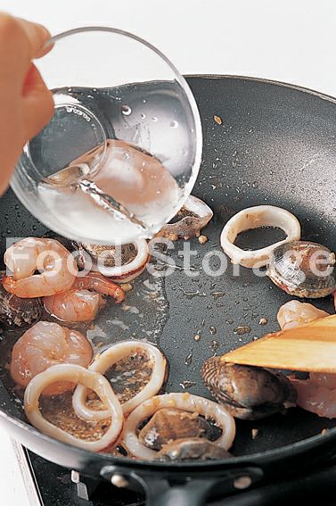 フライパンにごま油を熱し、1のしょうがを弱火で炒める。香りが出たら1のあさりといか、むきえびを加えてさっと炒め、酒を回し入れてふたをし、蒸す。あさりの口が開いたらあさりだけ取り出す。 |