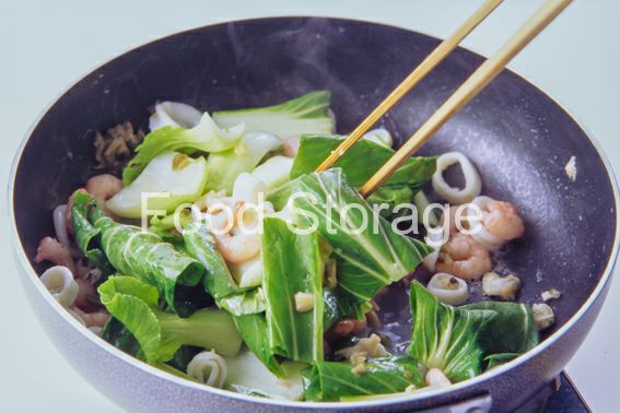 チンゲン菜 ザーサイ ごま油 おろししょうが シーフードミックス(冷凍) A(鶏がらスープの素(顆粒) 水 しょうゆ 塩 こしょう) ビーフン(乾燥)