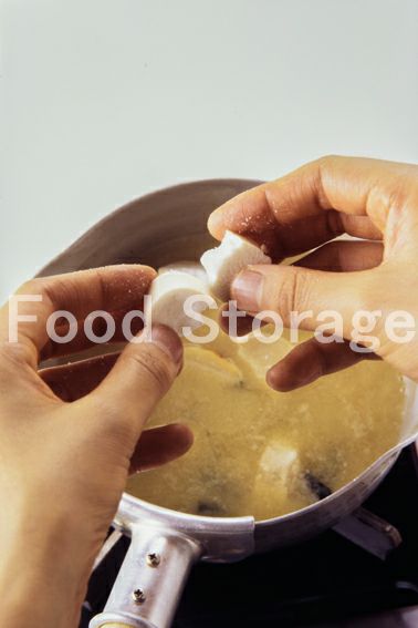 1.じゃがいもは皮をむいて8等分に切り、さっと水に通す。玉ねぎは粗みじんに切る。2.耐熱容器に1、牛ひき肉、Aを入れて混ぜ合わせ、ラップをして電子レンジ(600W)で5分加熱する。取り出してよく混ぜ、再度ラップをして電子レンジ(600W)で3分加熱する。3.2が熱いうちに、じゃがいもをつぶしながら混ぜ、6等分にして俵形に整形する。小麦粉、溶き卵、パン粉の順に衣をつけ、180℃の揚げ油でこんがりと揚げる。器に盛りパセリを添える。 |