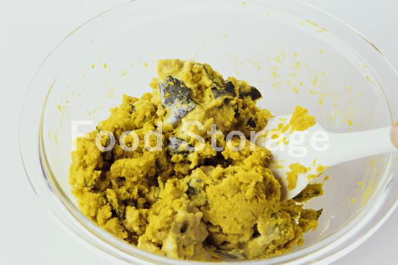 かぼちゃを耐熱皿に並べ、ラップをして電子レンジで4分加熱し、熱いうちにつぶしてAを混ぜ合わせる。 |