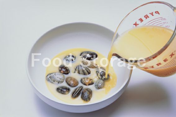 器にあさりを入れ、静かに2を注ぎ入れる。 |