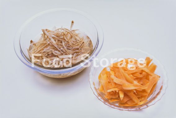 ごぼうはたわしで洗い、ピーラーでささがきにし、酢水(分量外)に浸ける。にんじんは皮をむき、ピーラーで薄くそぐ。 |