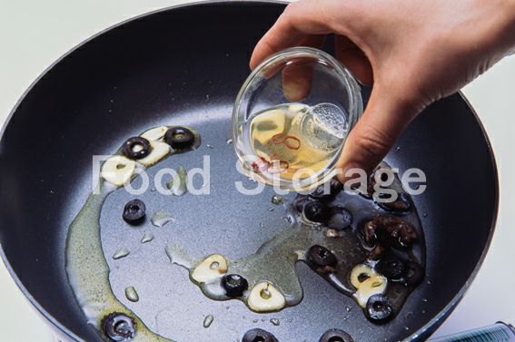 フライパンにオリーブ油とにんにくを入れて弱火にかけ、香りがでたら火を止め、アンチョビ、黒オリーブ、4を加える。 |