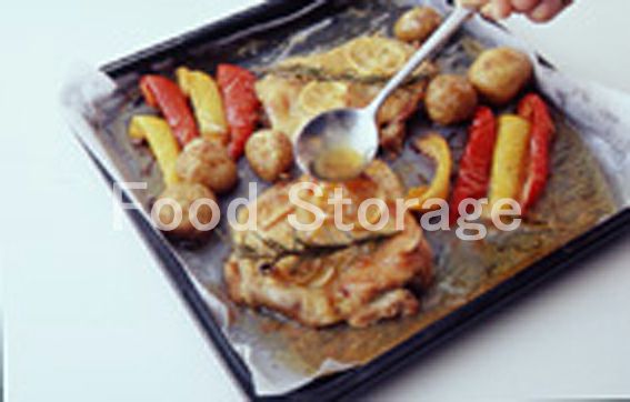 天板に3を並べ、220℃に温めたオーブンで、ときどき焼き汁をかけながら30分ほど焼く。 |