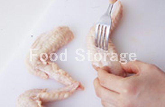 鶏手羽先は、フォークで全体に穴を開け、Aをよくもみこんで15分以上おく。 |