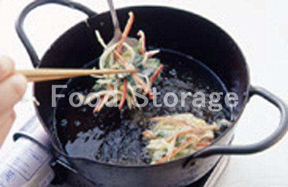 Aをさっくりと混ぜ合わせて衣を作り、2を入れてさっと混ぜ、お玉などを使って適当な大きさにまとめ、180℃の油でカラリと揚げる。 |