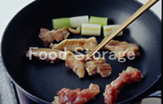 フッ素樹脂加工のフライパンで、油をひかずに2を入れて焼き色をつける。 |