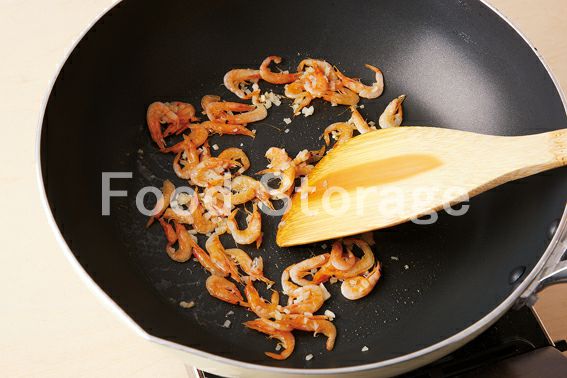 フライパンににんにくとバターを入れて熱し、桜えびを加えて炒め、水けをきった2を加えて混ぜ合わせる。 |