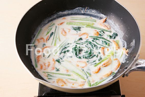 | 小松菜と桜えびのスープスパ |