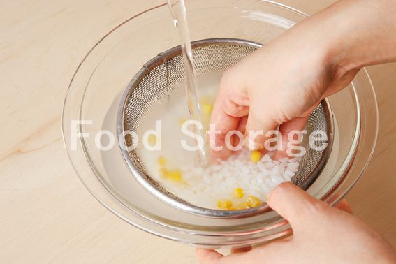 ご飯とホールコーンは熱湯でさっとゆで、冷水で洗って水けをきる。きゅうりは5mm角に切り、プチトマトは縦4等分に切る。