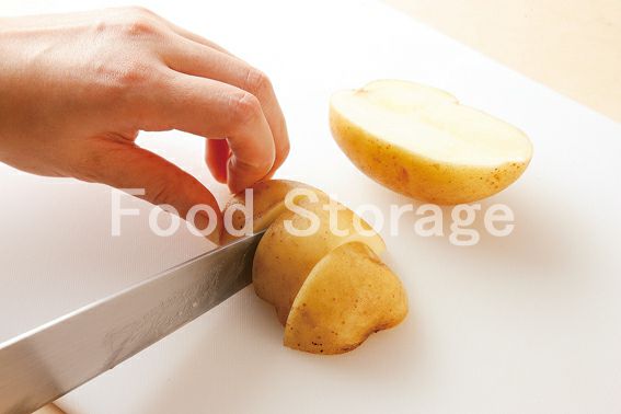 じゃがいもはよく洗ってひと口大に切り、耐熱容器に入れてラップをし、電子レンジで2分ほど加熱する。アンチョビーは包丁でたたく。にんにくは薄切りにする。