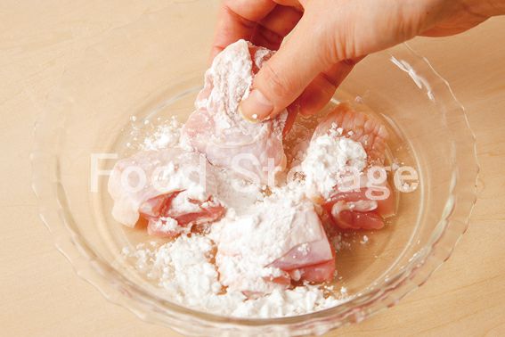 鶏もも肉(から揚げ用) 片栗粉 しめじ ほうれん草(冷凍) だし汁 A(酒 砂糖) B(みりん しょうゆ 塩) わさび