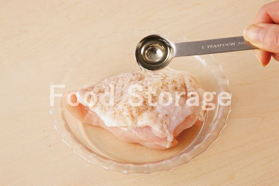 鶏むね肉は耐熱皿にのせ、Aをふり、ラップをして電子レンジで2分半加熱し、そのまま置いて余熱で火を通す。 |