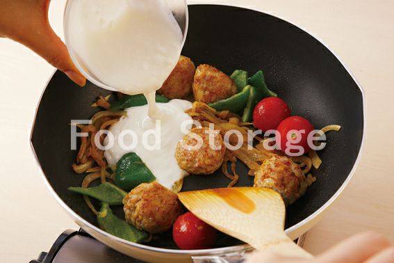 | みんな大すき肉団子とカレーの組み合わせ。 ヨーグルトでまろやかな仕上がりに。 |