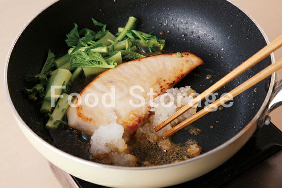 | めかじきはごま油の香りを効かせて、大根おろしとめんつゆでさっと味つけ。 |