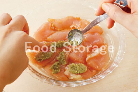 | ごま、わさびたっぷり、 電子レンジだけでできる鶏肉レシピ。 |