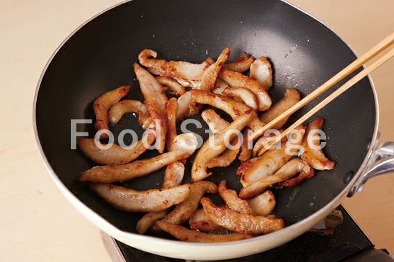 【豚トロのゆずこしょう焼き】豚トロ薄切り肉 たけのこ(水煮) 塩 春菊 サラダ油 A(ゆずこしょう ごま油 しょうゆ)
