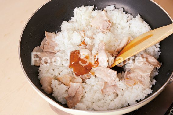 | みんな大好き、豚キムチの組み合わせをチャーハンに。 |