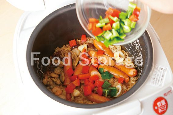 1.米は洗ってザルに上げておく。Aは1cm角に切る。紫玉ねぎは薄切りにする。2.チョリソーは斜め半分に切る。カレールーは刻む。赤唐辛子はヘタと種を取り除く。3.炊飯器に米、通常よりやや少なめの水を入れ、2、塩、こしょう、シーフードミックスを加えて軽く混ぜ、普通に炊く。4.炊き上がったらAを加えて混ぜ、10分蒸らす。器に盛り、紫玉ねぎ、香菜をのせ、くし形に切ったレモンを添える。 |