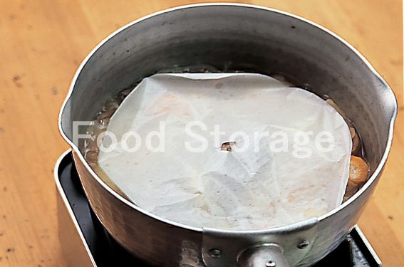 落としぶたをして、煮汁が半分ぐらいになるまで味をしみ込ませるように煮る。 |