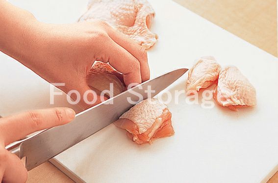 鶏もも肉は余分な脂身を取り除いて、食べやすい大きさに切る。 |