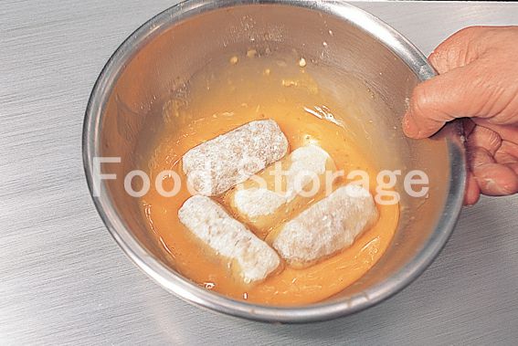 卵を溶いたボウルに6を入れ、ボウルをゆすってからめる。取り出してパン粉を全体にまぶし、形を整えながら衣をなじませる。 |