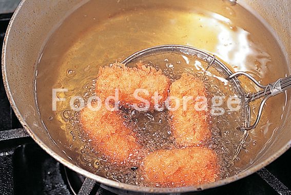 揚げ油を170℃に熱し、7を入れる。きつね色になって浮き上がってきたら取り出し、油をきる。皿に好みのソースを敷いて盛り、キャベツ、トマト、パセリを添える。 |