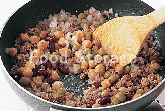 2に缶汁をきったミックスビーンズ缶を加え、炒め合わせる。 |