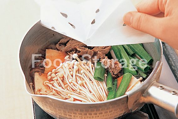 豆腐、えのきだけ、しょうゆ、みりんを加えて落としぶたをし、弱めの中火で5分ほど煮る。わけぎを加えてさっと火を通す。 |