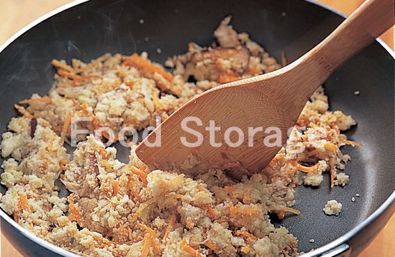 フライパンにサラダ油を熱して1を炒める。しんなりしたらおからを加え、水気を飛ばすように炒め合わせる。