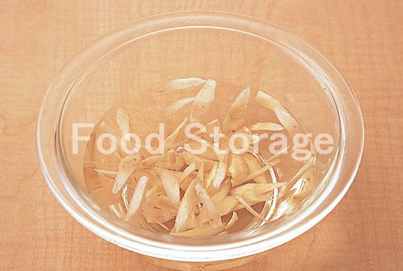 ごぼうはささがきにして酢水につけてアクを抜く。 |