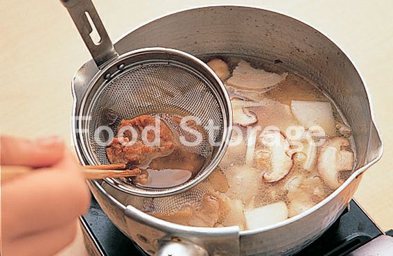 だし汁を加えて、煮立ったらアクを取って中火で煮込む。やわらかくなったら火を弱め、みそを溶き入れる。器に盛って万能ねぎを散らす。 |
