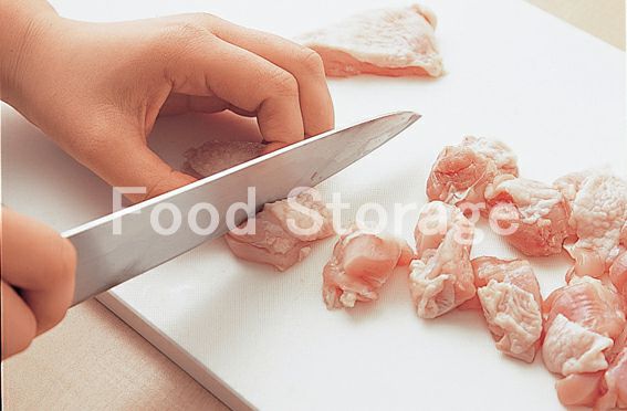 鶏もも肉はひと口大に切る。 |
