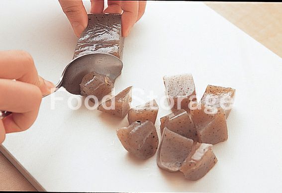 こんにゃくはスプーンでひと口大にちぎり、熱湯で下ゆでし、ざるに上げる。 |